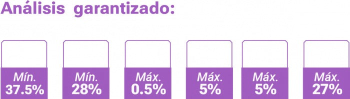 Con 28% de proteína y 18% de grasa, esta es la fórmula con mayor densidad nutricional de toda la línea, ideal para sostener el crecimiento muscular, la actividad constante y prevenir problemas comunes como hipoglucemia y deficiencias inmunológicas. Aporta 3,700 kcal/kg, cuidadosamente balanceadas para evitar el sobrepeso.